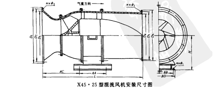 風機:風機采用斜流風機。是該風冷裝置重要組成部分。風機由筒體、葉輪、電機等部分組成